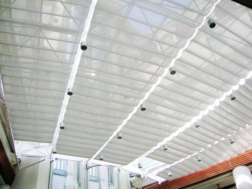 梭形百葉 翻板百葉 室外電動百葉 天棚簾 FSS FCS 布藝遮陽 商業(yè)廣場遮陽 室內(nèi)遮陽 簾享遮陽 新城吾悅廣場遮陽